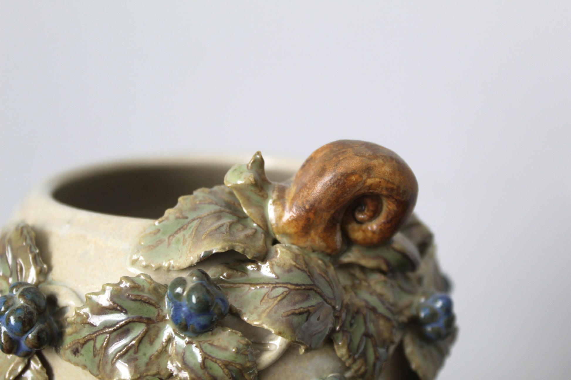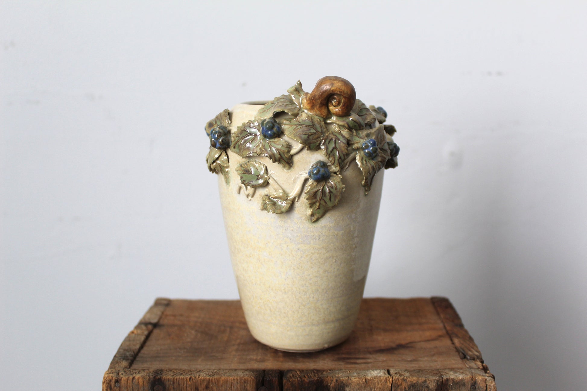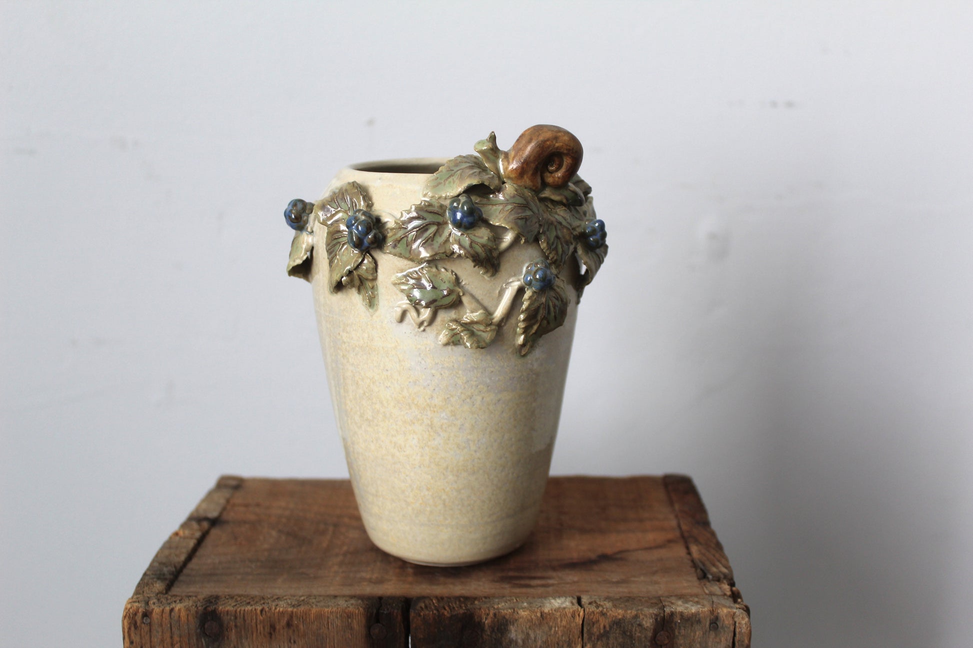 Questo vaso in gres è realizzato al tornio con successiva applicazione dei particolari. E' perfetto per decorare un angolo della tua casa o come regalo alla tua migliore amica.